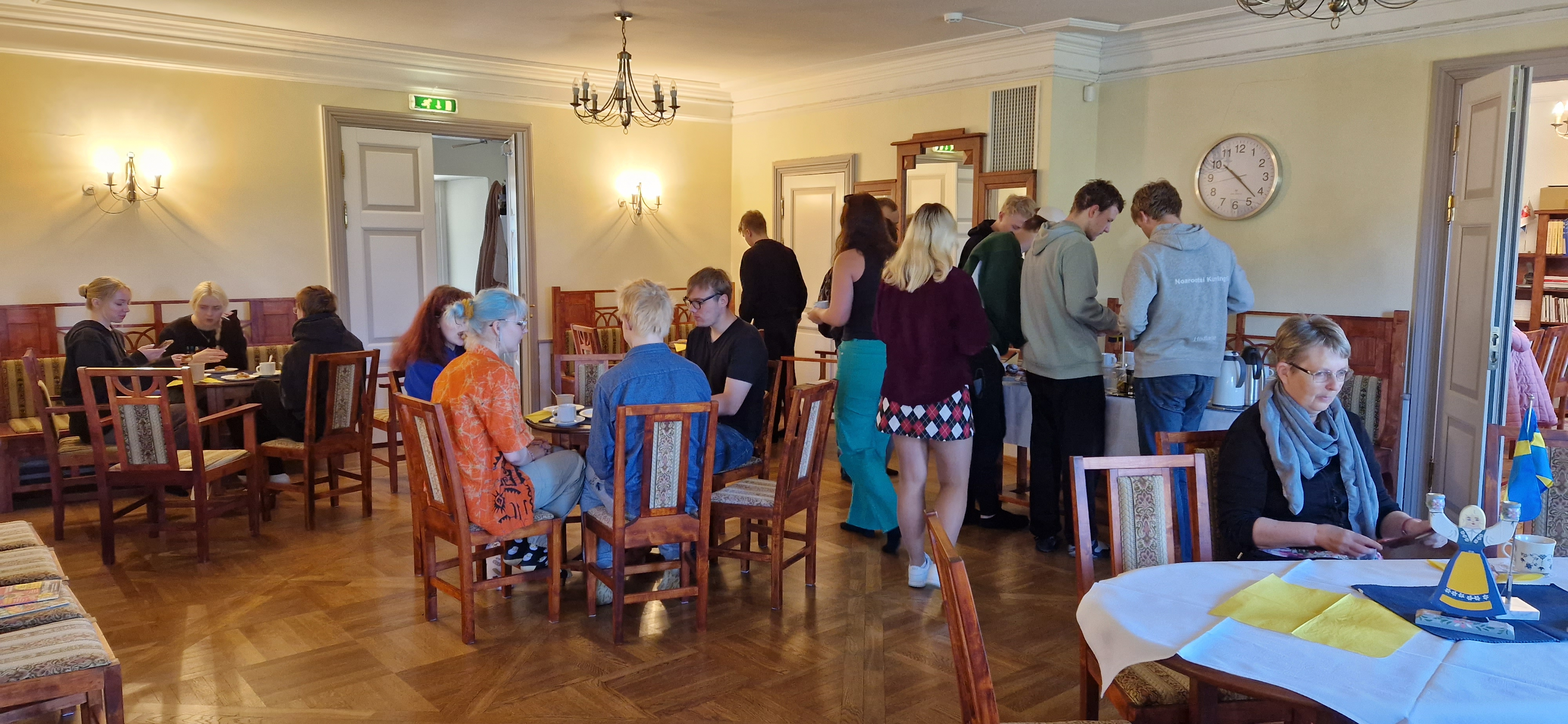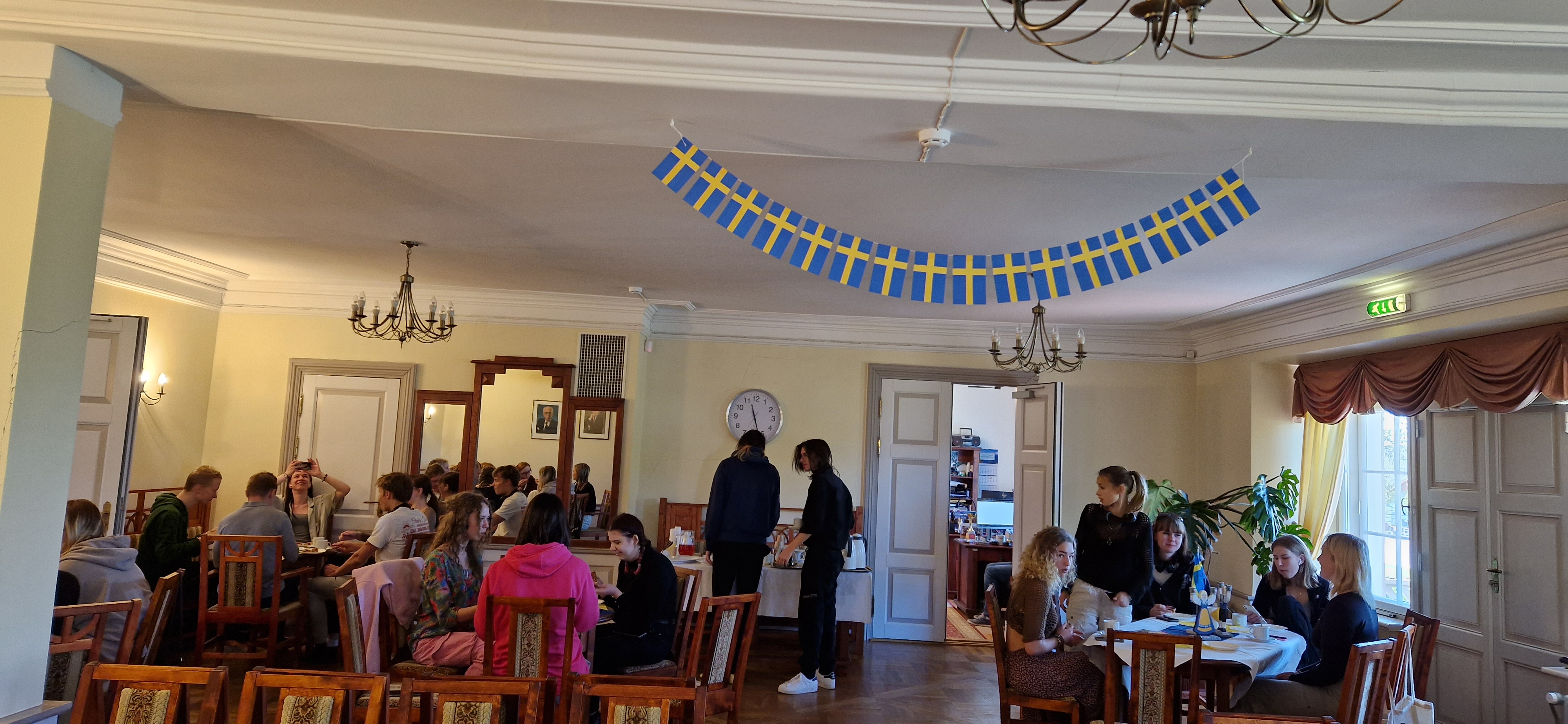 Reedel, 19. mail lõpetasime Rootsi nädala rootslastele omase Fikaga, kus iga gümnaasiumi õpilane sai tulla mõisa saali kohvikusse, mis oli teema kohaselt kaunistatud, ning teha endal suu magusaks kaneelisaiade, kohvi, tee ja morsiga.