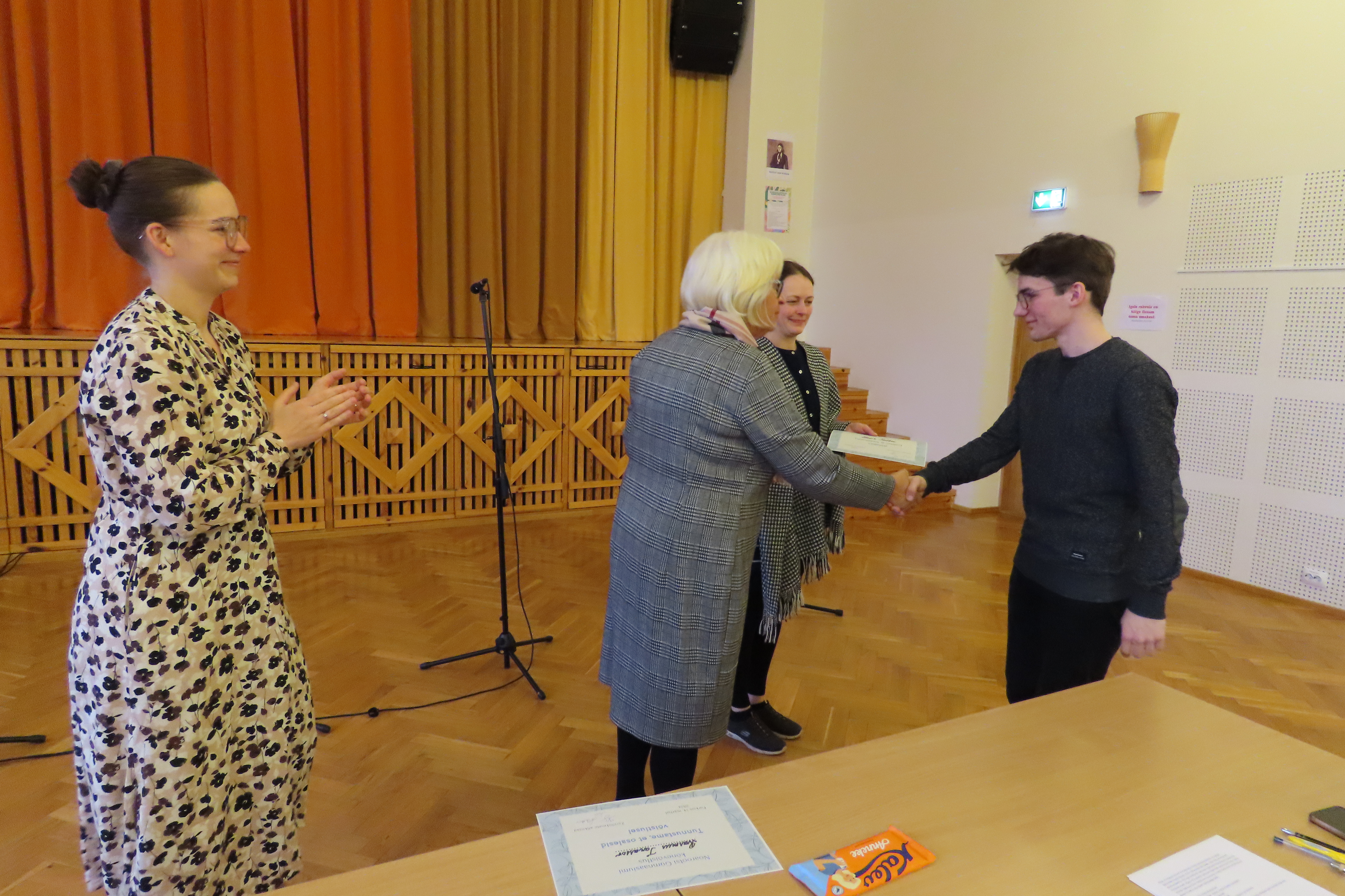 14. märtsil toimus 10.T korraldatud emakeelepäev. Selle auks viidi läbi kõnevõistlus, kus igast klassist üks esindaja esitas 3 – 5-minutise kõne, mille teema sai valida korraldajate koostatud nimekirjast. Üritust juhtis 10.T õpilane Kaspar Koor ning žüriis olid meie direktriss Laine Belovas, matemaatikaõpetaja Karet Schönberg ja meie armas huvijuht Kristina Kivi. Kokku esitati 6 kõnet. Kõneldi eestlusest ja patriotismist, emakeele väärtustamisest, sellest, kuidas saaksime maailma paremaks muuta, sõltuvustest vabanemisest ja teistel teemadel, mis meid puudutavad.10.T klassi esindas Ranek Kulbok, 10.V-d Helin-Mari Maripuu, 11.K-d Laura Liiv, 11.M-i Rasmus Tarasssov, 12.T-d Kärt Hõbe ja 12. K-d Marie Suur. Igal neist oli oma sõnum, mida kuulajatele esitada. Samal ajal, kui žürii paremate sõnaseadjate osas otsust tegi, toimus emakeeleteemaline minimälumäng, kus igast klassist osales kaks esindajat. Nutikamad olid selles teadmisteproovis10.V klassi õpilased Johann Peter Grave ja Sander Mattias Viirlaid. Žürii otsus oli järgmine: I koht Kärt Hõbe (12.T) II koht Helin-Mari Maripuu (10.V) III koht Laura Liiv (11.K) Rahva lemmikuks osutus Kärt Hõbe (12.T), kes osales 15. märtsil ka Viimsi Gümnaasiumis riigigümnaasiumide kõnevõistlusel.